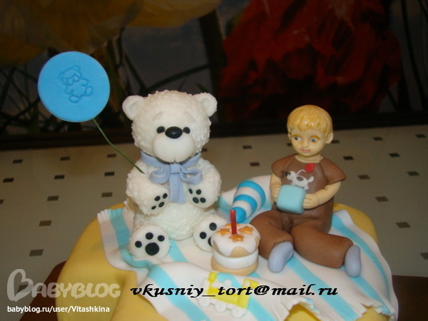 Торты детскиеМоя первая соска :)))) Мишка, одежда малыша и соска - по фото заказчицы :)