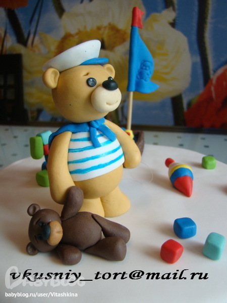 Торт на годик с мишкой-морячком и лодочкой :)
