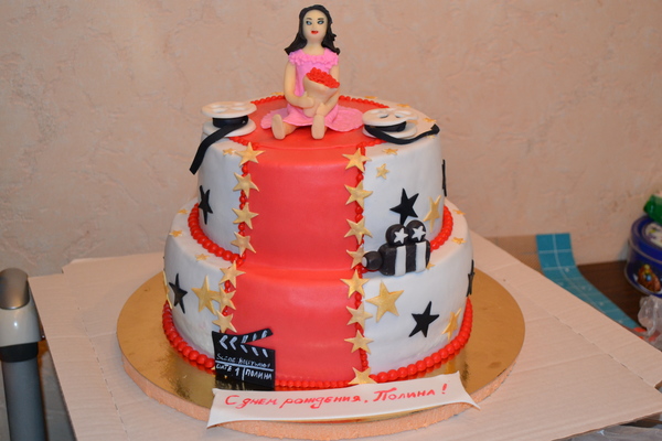 Ну прикольная тетечка! Она может в фильме играет зомби))) Торт же с киношной тематикой))))