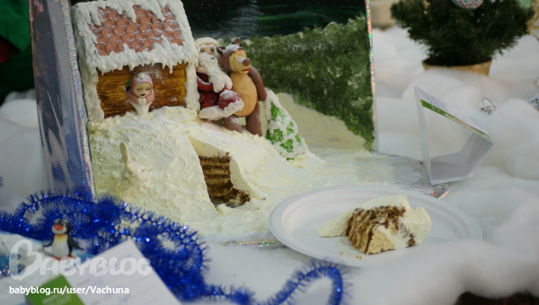 16 -го дек. был очень слабый уровень конкурсных работ. Я видела уровень работ прошлого года и когда ехала со своим сделанным за ночь тортиком (хоть и аккуратным и довольно эффектным, но не конкурсным... не хватало сюжета, деталей, какой-то изюминки) понимала, что мне ничего не светит. Приехав на место (без ложной скромности скажу) увидела что моя работа одна из лучших. Когда дали серебро, я подумала что дело в начинке. После награждения я задала вопросы членам жюри "что было на их взгляд не так в моей работе". Ответ Е.Шрамко (почти цитата): "Оформление - на золото. Начика - вкусная. Мне не понравился голубой бисквит. Не надо увлекаться американщиной." Вот так вот )))). Я за свой голубой бисквит уверена на все 100%. В данном торте его применение было оправдано и поддерживало оформление торта. Более того - я давно ждала случая чтобы использовать в торте цветную начинку и виски 12 летней выдержки. Приехав домой мы пробовали начинку - она была отличная!