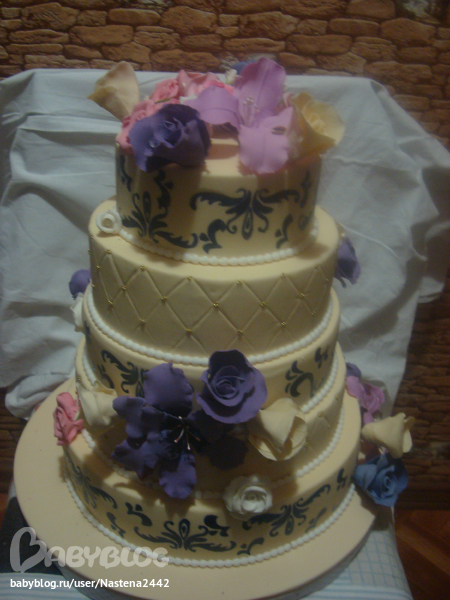 ух ты сколько ярусов!!!!!красивый торт! а укреплять большевесные))) торты можно трубочками для суши, вот уж они точно выдержат! ну и обязательно подложку под каж. торт!!!