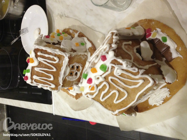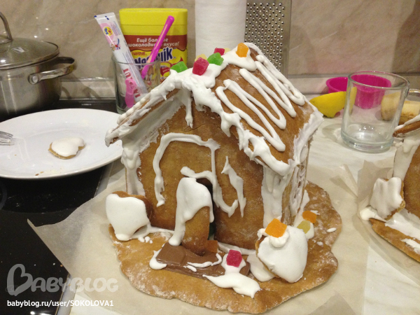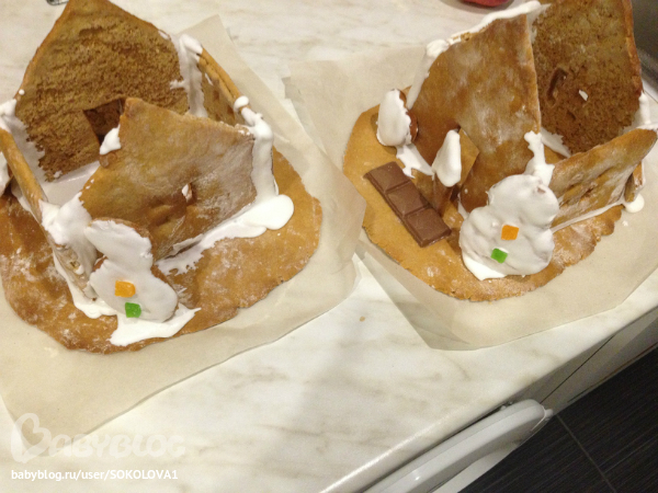 Проба пераМои первые домики были такими http://www.babyblog.ru/community/post/konditer/1740529 !!! Но я решила не сдаваться! Учла все ошибки и советы и вот что получилось сегодня, сделала 2 домика! Быстро все получилось! Если бы еще духовка у меня была...а то приходится выпекать в аэрогриле! Айсинг получился на славу, сегодня не пожалела пудры, застыл быстро! Не обращайте внамание на рисунки, художник из меня еще хуже чем кондитер))))))))))