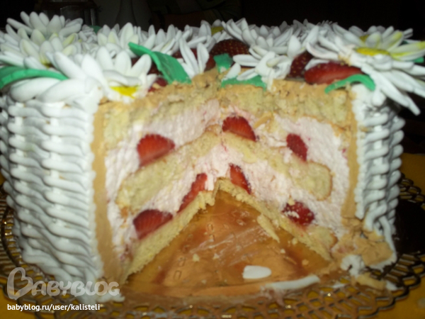 Шифоновый бисквит, клубничное йогуртовое суфле с клубникой.