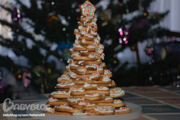 Печенье,пирожные,конфеты, выпечкаСделала родителям вот такую ёлочку! Возилась с ней ночью, с 00.00 до 03.00, но результат меня порадовал!