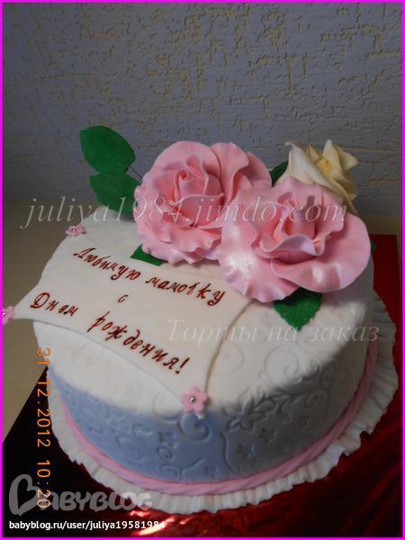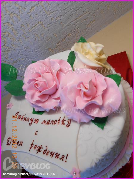 у которой день рождение 31 декабря, но тематика не НГ, заказывала дочка и попросили что-нибудь с цветами в нежных розово-белых тонах. Внутри шоколад на кипятке, крем-брюлле, грецкий орех. Вес - 3,1 кг.