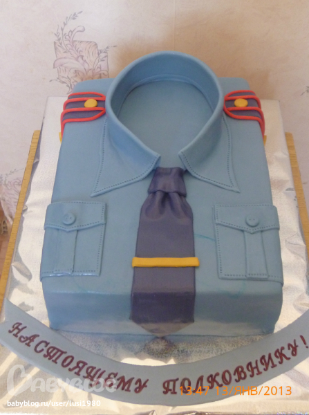 Торты для мужчинРубашку заказала девушка для своего папы, он у неё подполковник милиции в отставке, а надпись -её пожелание.