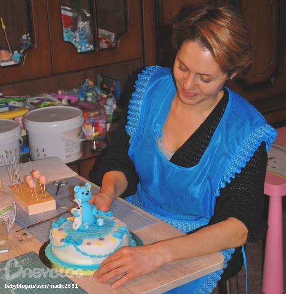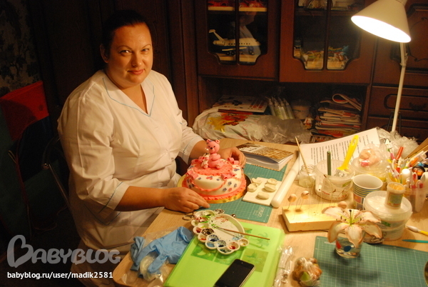 Моя ученица с тортиком,который сама обтянула ,сделала фигурку и задекорировала-и всему этому можно научиться за один день,и не только этому,читайте программу курса