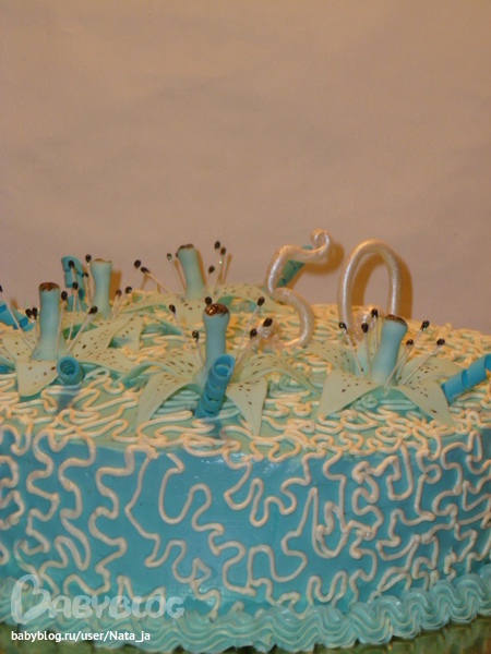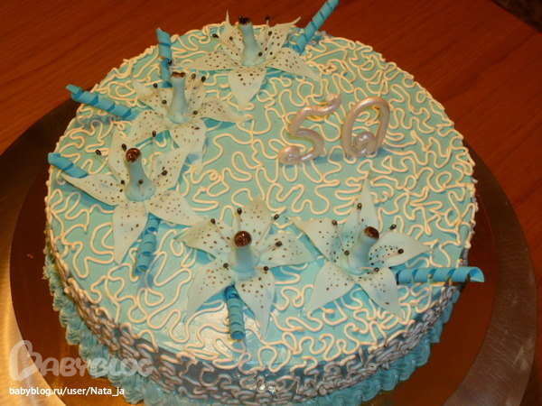 Торты для мужчинЗаказ был сделан заранее,голубые лилии и цифра 50,планировала сделать немного по другому,но смерть папы подкосила,кое как взялась за него,хотя работа и отвлекала от грустных мыслей...вот что вышло