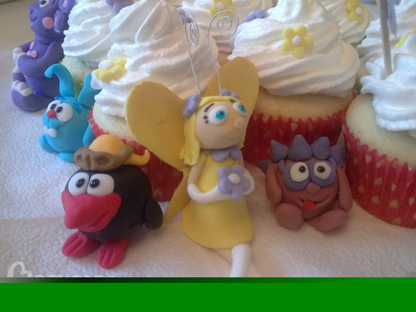 И много лепки...Фигурки ехали рядом с капкейками, на самом празднике задумано посадить их сверху.