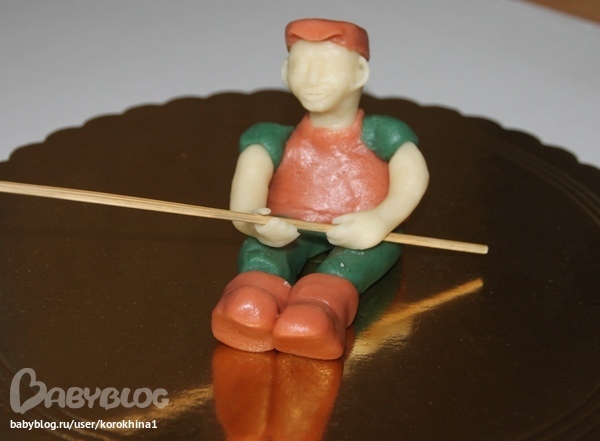 Девочки! Скоро юбилей свёкра. Он рыбак и я решила попробовать себя в лепке. Лепила из марципана. Лицом более-менее довольна, а размерами и телом нет. От сюда куча вопросов. Как расскрасить ему лицо, есть только америколлор.(его надо разводить или прям так попробовать нарисовать глаза, рот и брови)??? И самый главный вопрос, можно ли его как-то сделать более похожим на человека или лучше попробовать сделать его заново? Как вы делаете тело??? Я почувствовала себя дошкольницей глядя на дело рук своих. Под катов ещё фото.
