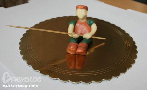 Ален, всегда сначала кажется, что слооожно и ничего не получится. Дело практики) Только марципан для лепки мне кажется, не самый удачный материал. Моделпаст, конечно, подтаивает в руках, но приноровиться можно. Мне из модела нравится лепить)Для первого раза мужчинка нормальный даже) Раскрасить Америколором можно, только чуть его разведи, чтобы легче кисть скользила.