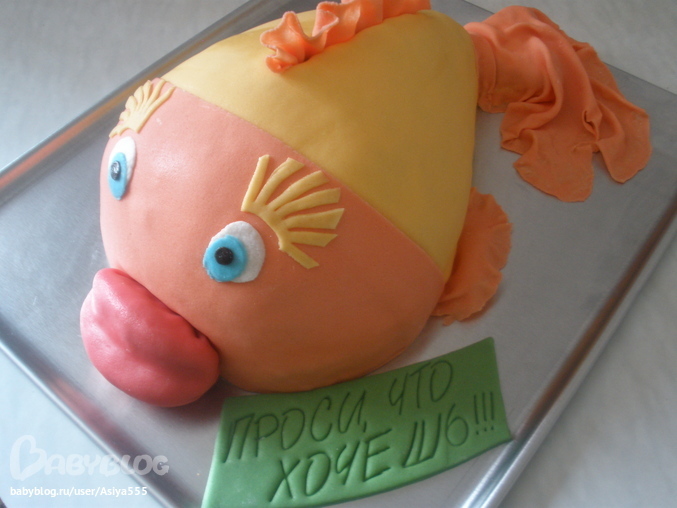 Спасибо! Мало было мастики, да и времени тоже в обрез, поэтому лысая золотая рыбка