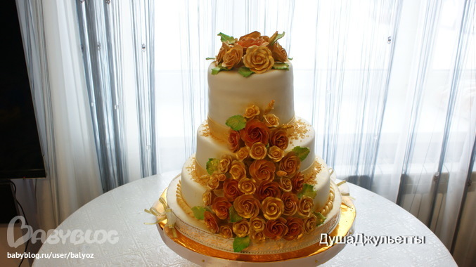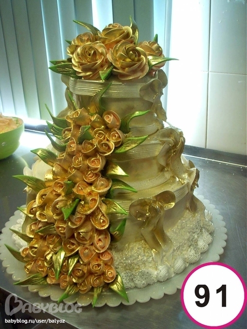 Бедный жених (( Она его наверное тоже в золотой костюм одела))) Твой тортик более живой!!!!! Очень красиво,умничка!!!!!