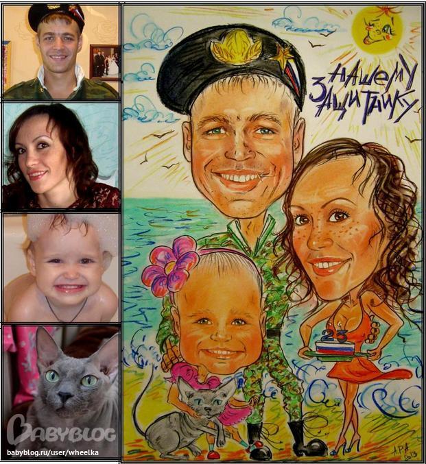 Класс! А шеврон - вообще как будто напечатан! Супер! Шарж - отличная идея для подарка!