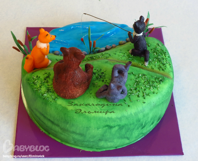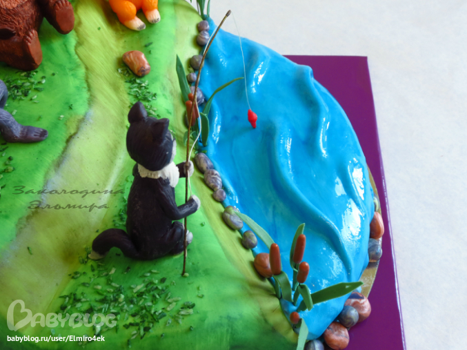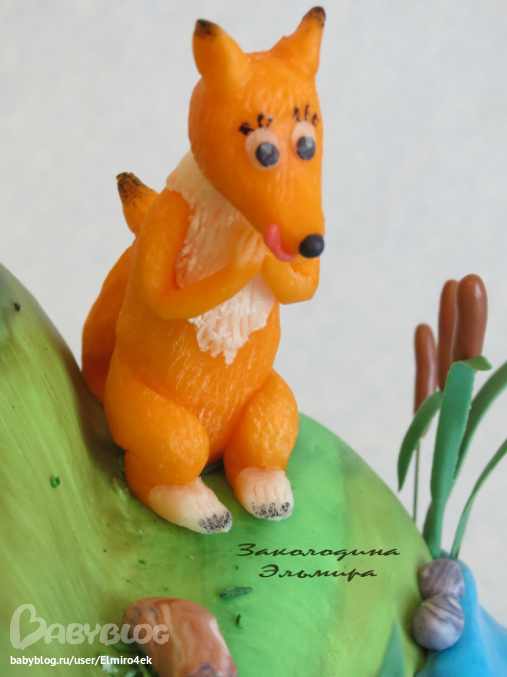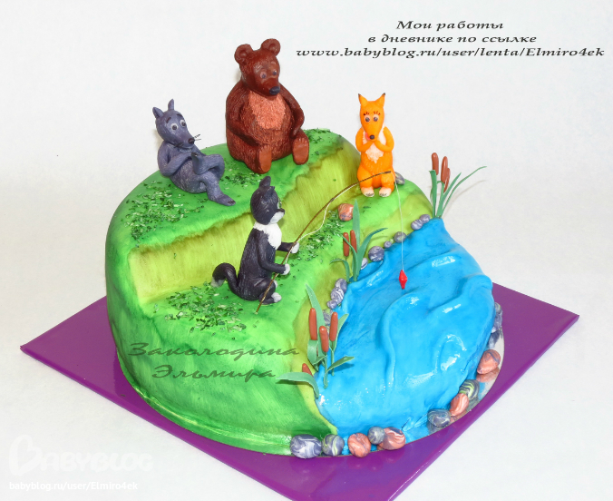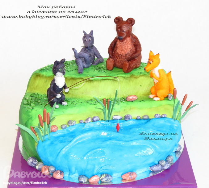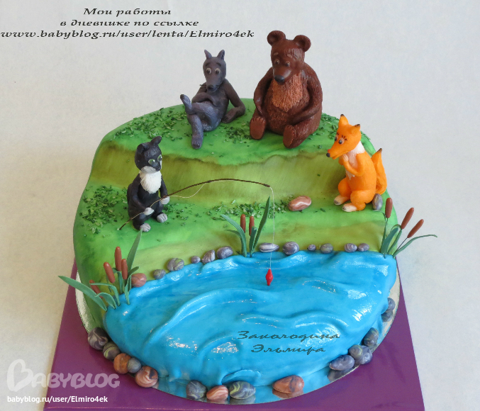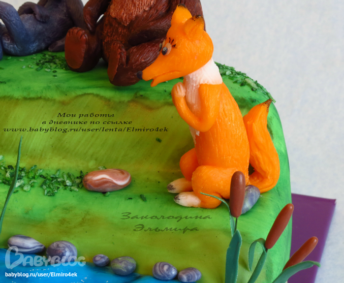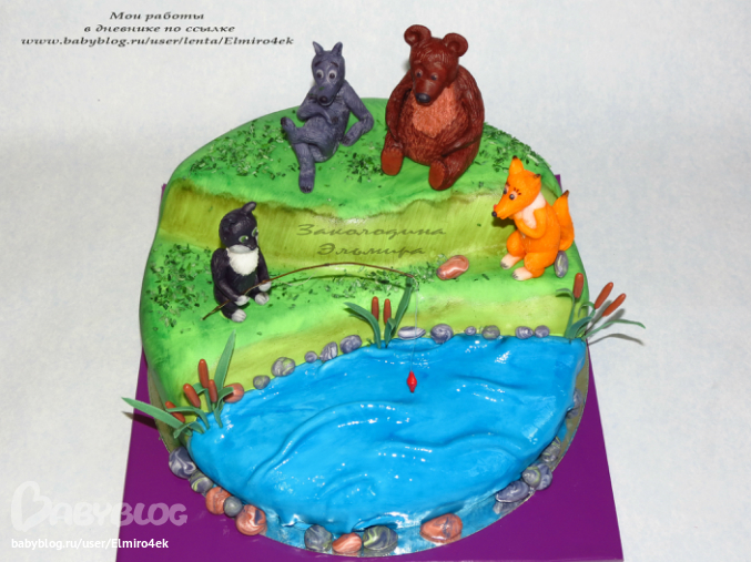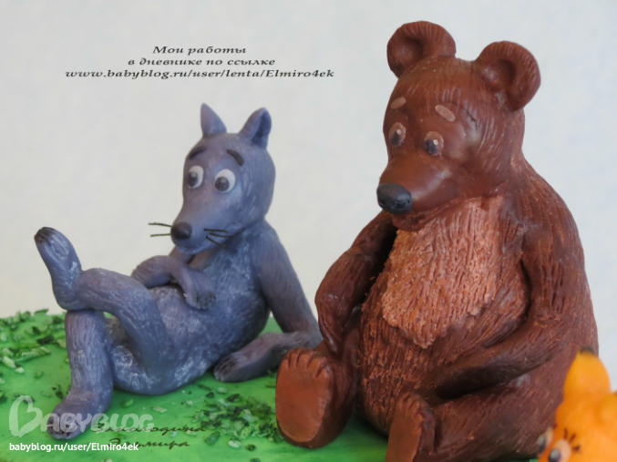 Очень мне ее зверюшки понравились, ну просто ожившие герои сказок, а не сах.фигурки. И ТАК мне захотелось сделать что-нить подобное....ну хоть попробовать, получится, или нет. Так хотелось, так хотелось.... И тут звонит мне моя давняя знакомая и заказывает торт на 3х-летие своей доченьки Танечки. И выясняется, что у девочки есть любимая книжка, по которой мы и решили сделать тортик.