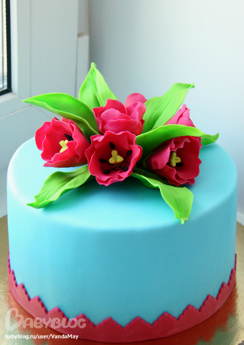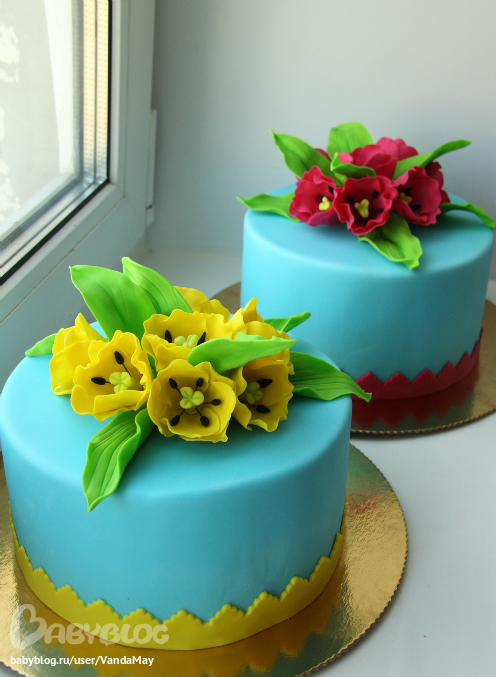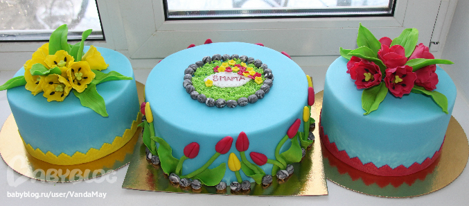 Давно хотела сделать тюльпанный тортик с лейкой) Но нужно было три тортика и я решила сделать их в одном стиле.