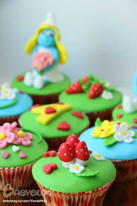 Внутри ванильные с кусочками шоколада. плоские украшения по 100 руб/шт, с фигурками зависит от сложности, со смурфиками по 200 руб/шт. Преображенская площадь
