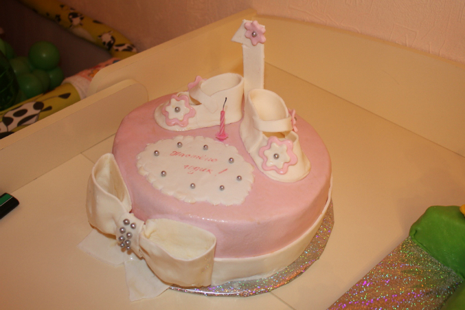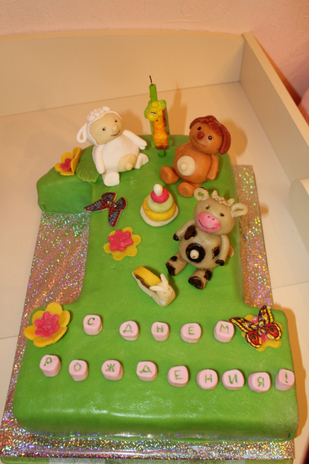 Четвертый и пятый мастичный торт. Конечно еще не шедевры и много недочетов и неровностей, но я всё равно очень довольна и горда собой, и гости были в восторге! Мои труды были не напрасны! Вот только всё таки я забыла покрасить кнопочки в голубой цвет, хотя раз пять собиралась это сделать.