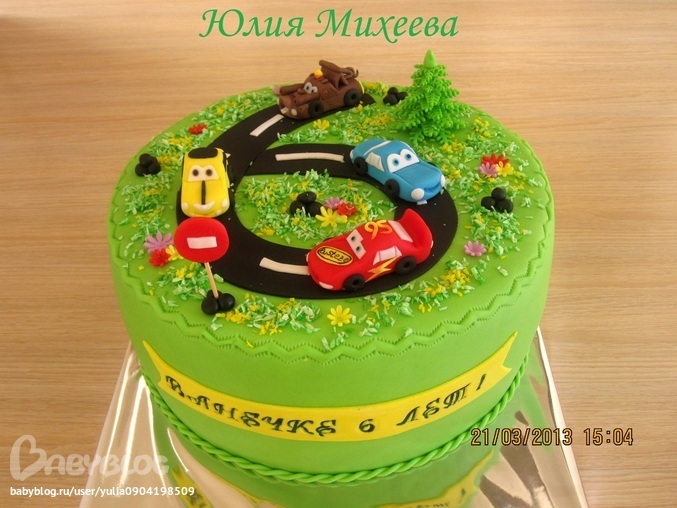 Обалденный тортик. Машинки супер! Юлечка, а машинки молдами делала или лепила ? А я нак и не смогла Овалетте обтянуть. Уж очень сильно она тянятся. Овалетте у тебя для обтяжки или лепки?