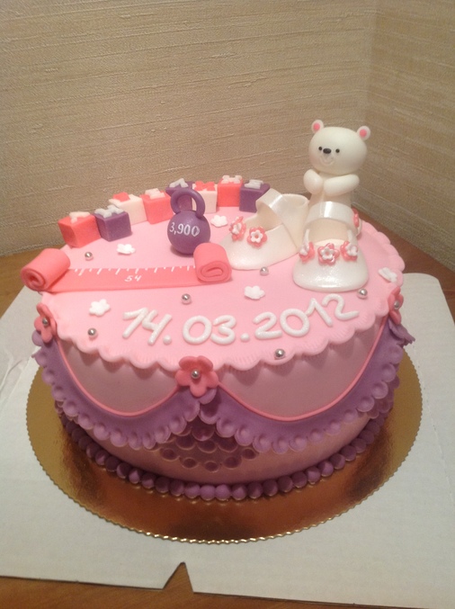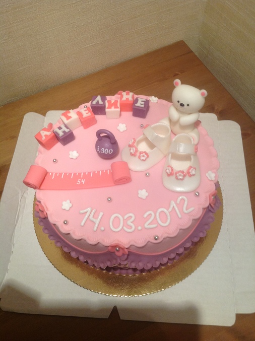 Диана, наконец-то добралась, чтобы написать Вам! Спасибо большое за тортик для Виолетты) Для меня это был сюрприз, когда из роддома приехали дома было всё украшено огромным количеством шариков, было море цветов, а Ваш тортик просто поразил - идея замечательная!!!! Гости слопали торт за несколько минут, мне осталось полкусочка - было очень вкусно!!!!