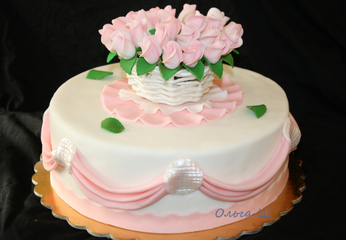 тортик замечательный, особенно корзиночка! вот эти штучки круглые чуток вид портят, к сожалению, бантики или бабочки были бы хороши...