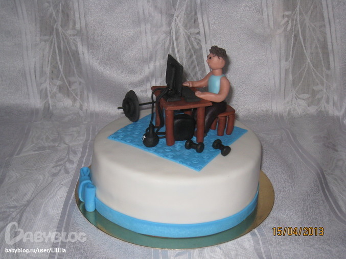 да, она увидела тот мой тортик с качком и тоже захотела что-то на подобие, но чтоб мужчинка за столом сидел и за компом))