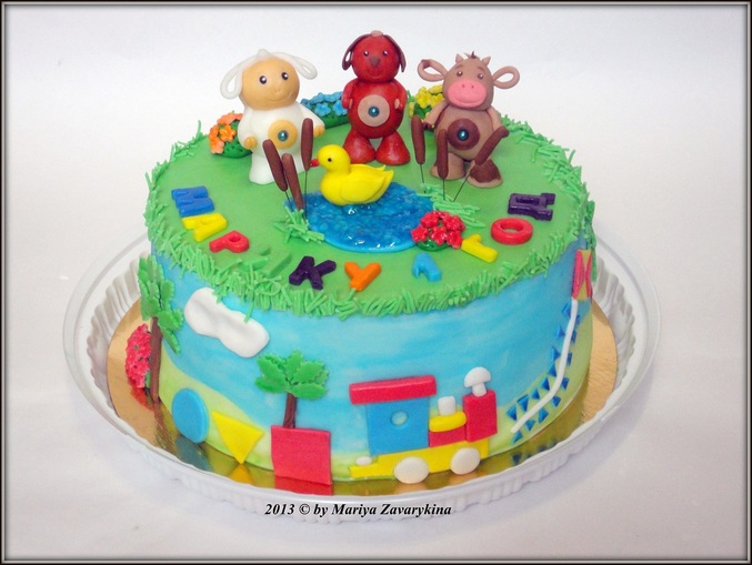 Внутри: ванильный шифоновый бисквит, пропитанный лимонным ликёром, крем Маскарпоне, миндальные лепестки, вяленые персики, киви, ананасы, клюква. Вес 4 кг