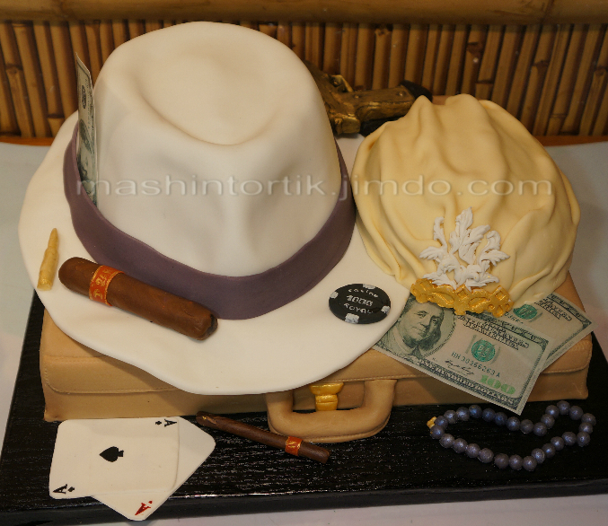 Торты тематическиеТортик для нашей ББ-шечки @id766934 на тему Чикаго 20-30-х годов 20 века. Вес 9 кг, в чемодане птичье молоко, в мужской шляпе Клубничный поцелуй, но с творожно-сливочным кремом, в женской шляпке чизкейк Нью-Йорк. Огромное спасибо Наташеньке за денежку, а Аленушке за молдик бус :))