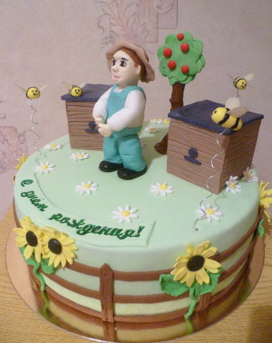 Торты для мужчинЗаказала девушка для своего дедушки, который увлекается пчеловодством.