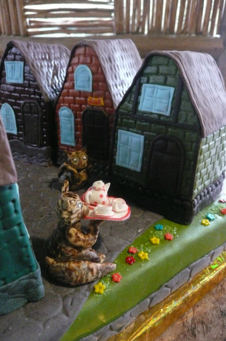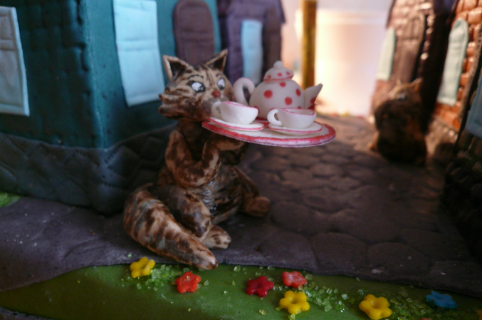 Обмазано все ганашем...Эдакая улица с узкими голандскими домиками, на которой друг напротив друга стоят кошкомать и кошкодочь. Мама с подносом зовет малую в гости.. Над двумя домиками таблички с их именами...