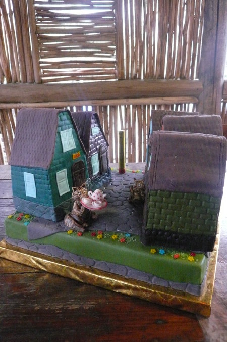 Торт на совместный день рождения мамы и дочки... Мама архитектурный критик, поэтому торт хотела тоже архитектурный, с домиками, а также любитель кошек)