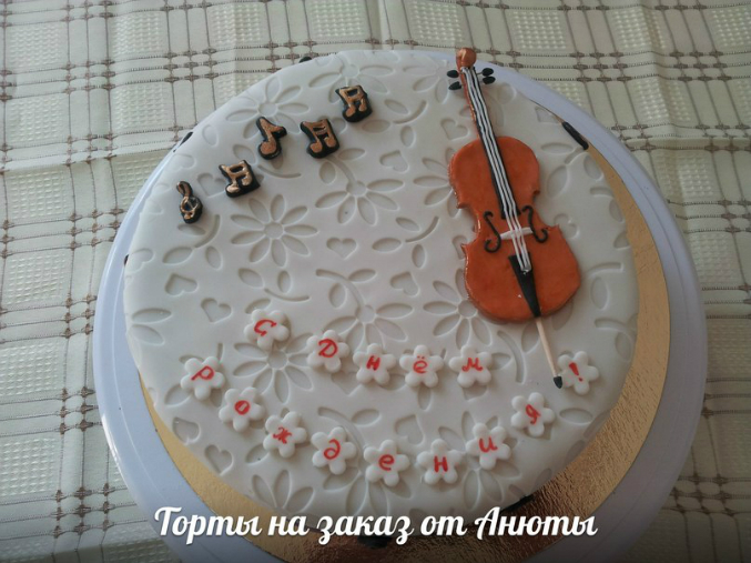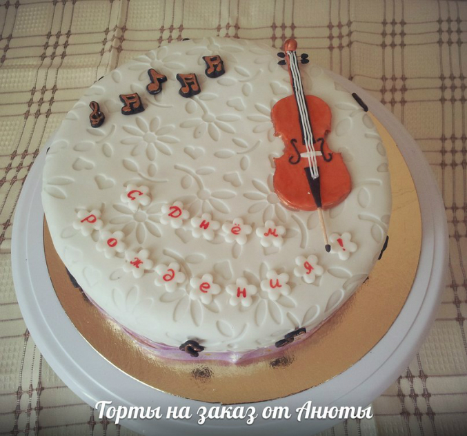 Красивый тортик, аккуратный, виолончель суперская!!! Но только 3 струны и без смычка((( (это я придираюсь) а так всё очень нравится!!!