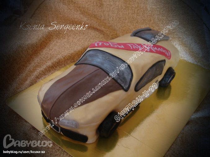 Под наложенными на фото подписями очень сложно вообще разобрать ,что за торт.Я бы вам посоветовала не так щедро ими пользоваться.По поводу торта,машины вообще очень сложные для работы торты.Я могу по пальцам пересчитать людей ,которые на отлично с этим справляются.Не перевирая пропорции и размеры машины ,которую они копируют.Всем нам еще очень многому предстоит учится.