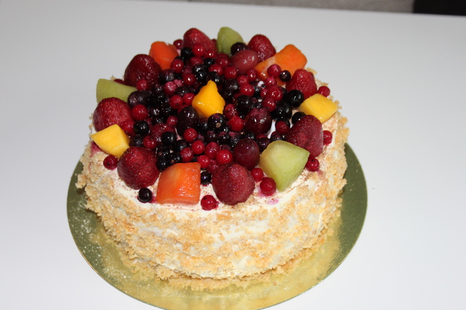в этом тортике замороженные, так попросили) со свежими дороже же. а так я и со свежими делаю) замороженные кладу утром на тортик и к вечеру, когда торт пора кушать они очень даже вкусные) пудрой еще если посыпать их то ммм)))