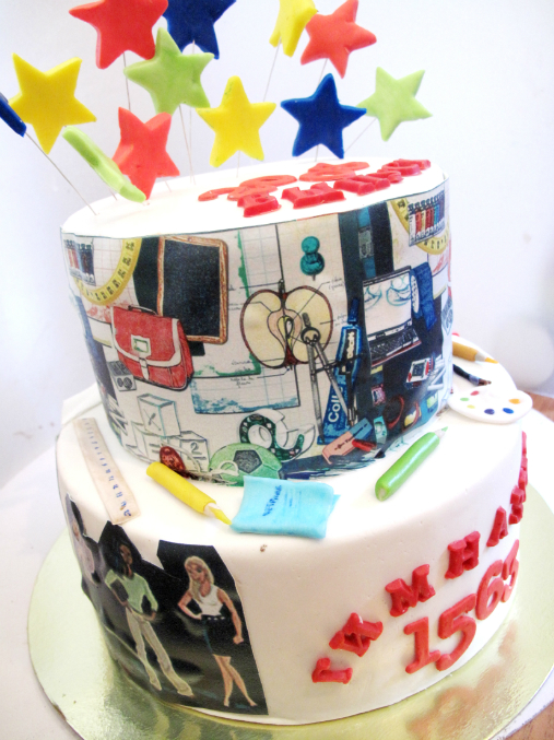 Симпатишный тортик!!! Здорово ты сочитаешь на тортике печать...