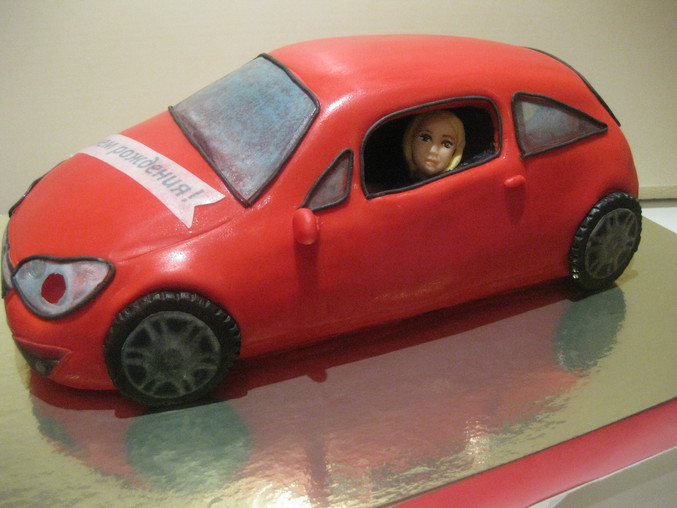 Ой,блин!!!!! Думала,что тётеньку завалит Панчо))))) Да,перед обтяжкой.Вырезала окно,промазала картошкой,подморозила и окно изнутри обложила чёрной мастикой.Но самым сложным оказалось тётеньку по запчастям туда впихнуть))) Тётенька-трансформер)))) Там ещё и руль есть,за который она держится,правда одной рукой)))