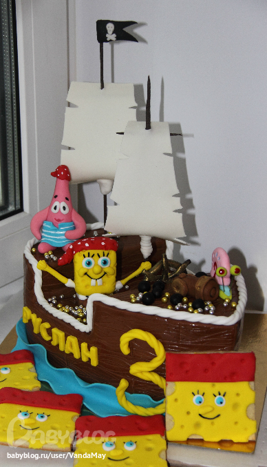Торты детскиеМой классический корабль)))) со Спанчем, Патриком в тельняшке (ну не знала как на его формы по-другому одеть тельняху)))) и Гэри.