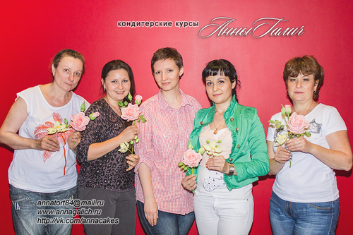 Вот фотографии с курсов в новом помещении - курс по сахарным цветам в английской технике (Роза и Орхидея), который был 30 мая.