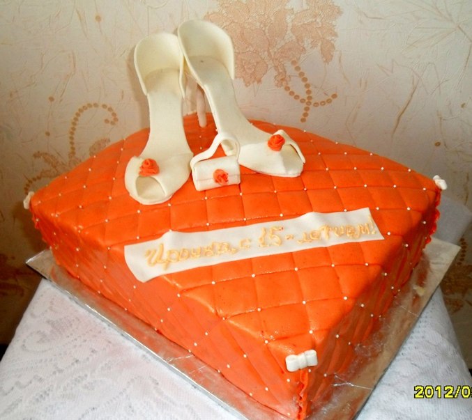 сам тортик ровненький яркий, а вот туфли, как!будто местами неправильно поставили, ну и конечно соотношение пропорций туфлей и сумки, ну уж очень маленькая, лучше было бы цветок чтоли