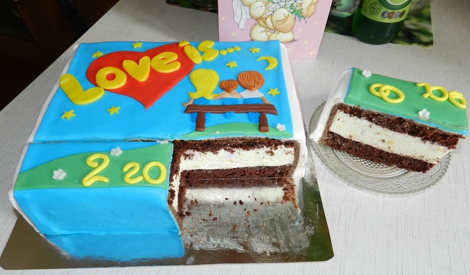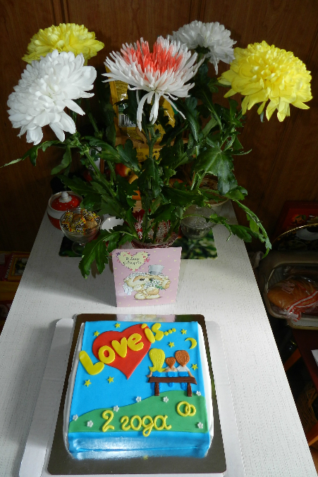 А торт в честь нашей с мужем вчерашней бумажной свадьбы))))) Друзья постарались))