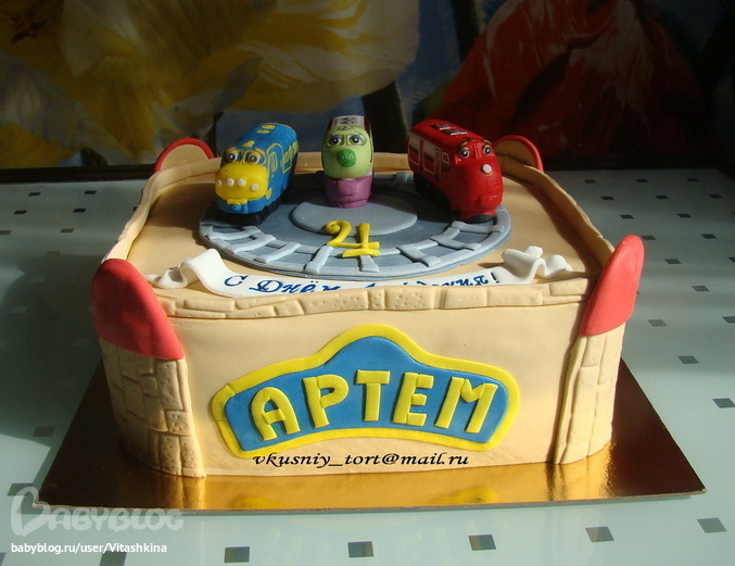 Ему прошлый торт очень понравился) про эти паровозики ахнул аж) сначала не понял про чем тут Артем)))) он же Тема))) Организовывай доставку!)