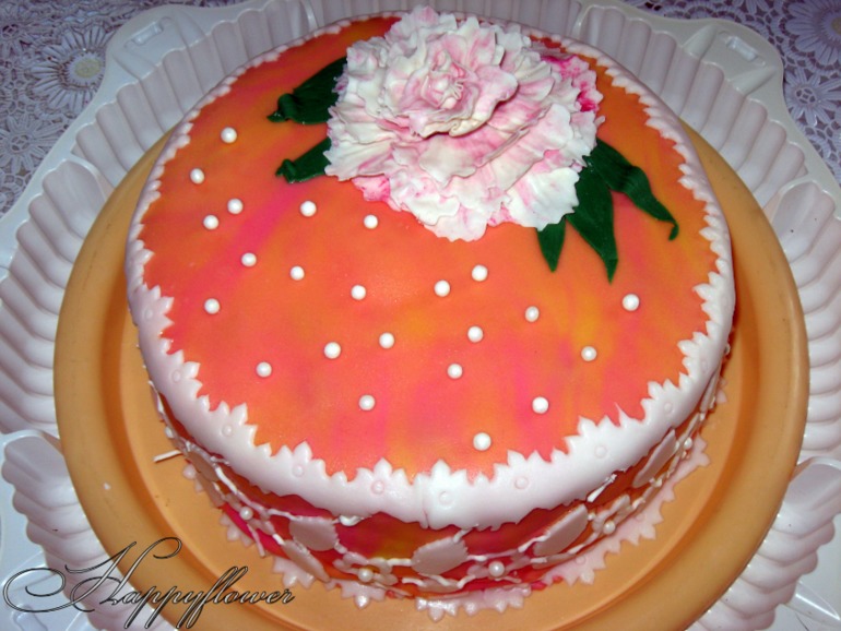 Фото сделано после 8мичасового путешествия торта в багажнике машины без кондиционера ))))))) пион немного опал (цветочка почему-то не хотела засыхать абсолютно) "кружево" на боках тоже местами отвалилось, но если не приглядываться, то в общем - ничего )))