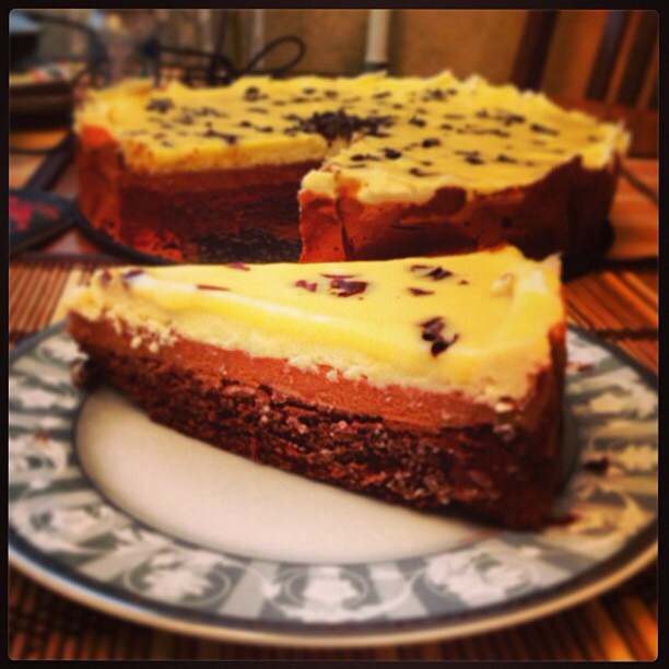 Торт очень вкусный сама его пеку, мужу и родным очень нравитсяРецептов в интернете очень много, вот фото первого торта, который я делала, с практикой получалось все лучше и лучше. В первый раз я вырезала круг из бисквита на пару сантиметров меньше формы, и слой из темного шоколада разровняла туда, в остальные разы я уже не вырезала, а дела слои из шоколада сверху на бисквит, тоже очень и очень, кстати, первый раз дела, купила дорогущий швейцарский шоколад, тк слышала, что лучше брать шоколад получше, тк дешевый плохо топится, но в последующие разы я брала наш "воздушный" и топится он не хуже!
