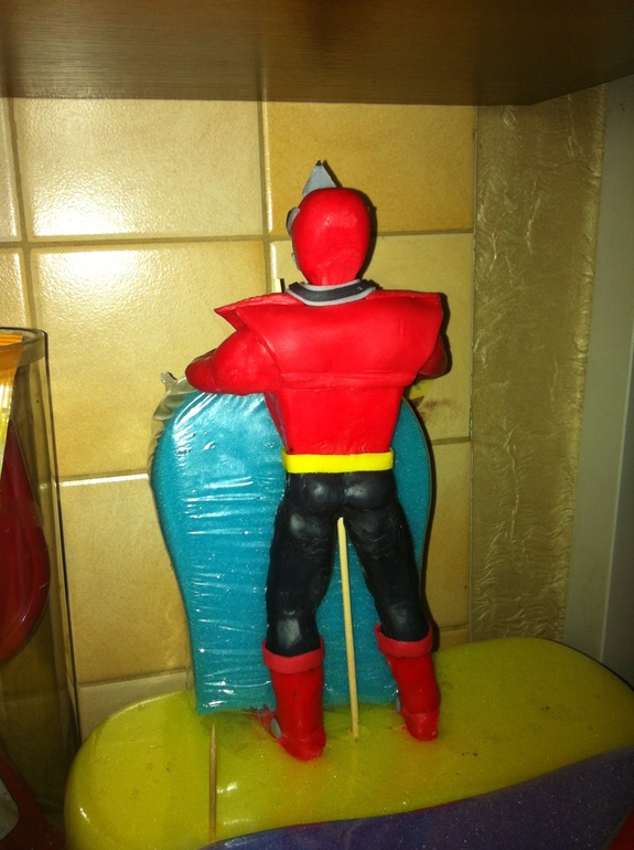Лена, у него внутри каждой ноги до бедра проволока, в сапогах зубочистки , при всем этом он отказывался стоять в полный рост, поэтому кол был необходим при сушке, дабы самурай остался прямоходящим. На торте осью является его меч-кладенец. Так как сама не из сторонников всех железок и палок, то все фигурки делала без каркаса, в силу этого самурай тоже был полностью вылеплен и только после такой оказии с оседанием и желанием упасть, спасала работу вставляя штыри. Сама понимаешь, при их внедрении все равно фигурка деформируется и её приходится заново выравнивать. Для повышения КПД считаю, что нужно уже сразу облепливать проволоку(шпажку), придавать конечный вид запчасти, потом холодильник- сушка. В основном у всех нормальных( кроме гусаров) ноги расположены близко, ногу на каркасе можно поставить под нужным углом на нужном расстоянии. За похвалу отдельный сенкс:)