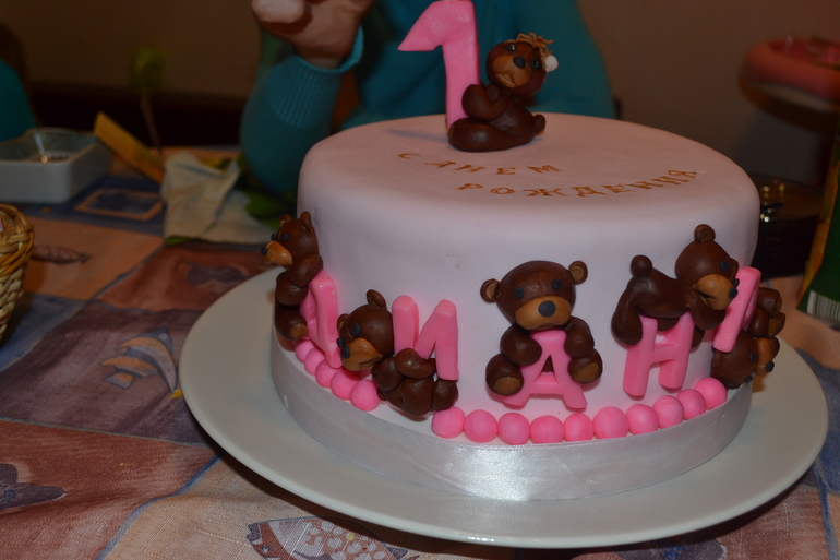Это был красивенный и безумно вкусный тортик!!!! Все гости были в восторге. Ни кусочка не осталось))))Даже мастику всю слопали