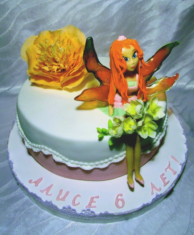 Могу сделать тортик, но фею тоже делаю размера с куклу,так что размер торта должен быть не маленький! Может вам еще посмотреть вариант - фото-торт(со съедобной картинкой)