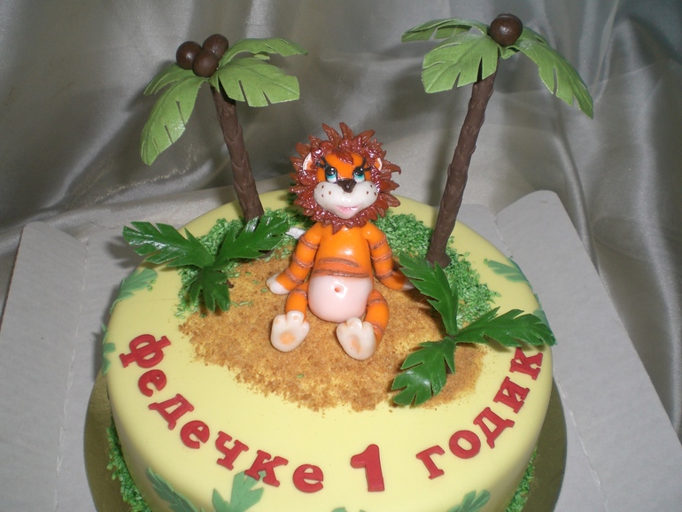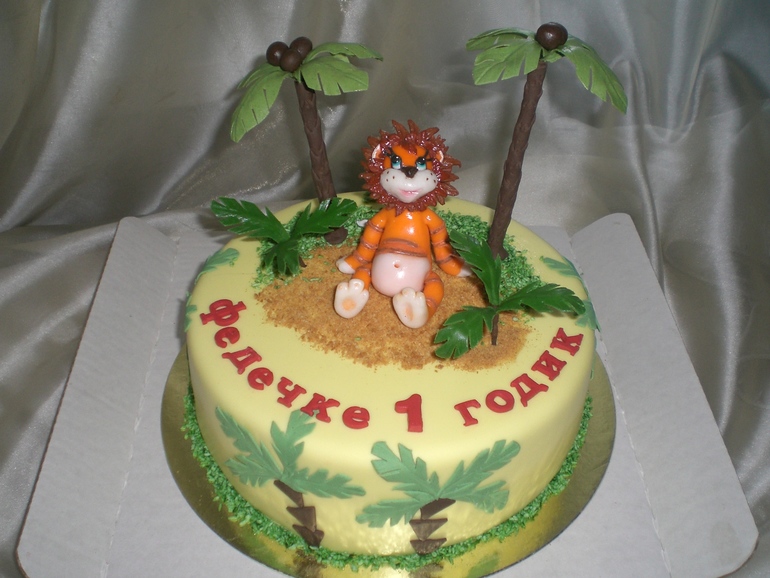Торты детскиеЗаказали тортик на годик. Дизайн доверили подобрать мне самой.Просили что б на тортике был львенок. Т.к мальчик по знаку зодиака лев и ему очень нравится мультик про львенка и черепаху. Вот такой тортик у меня получился. Вес 3 кг.