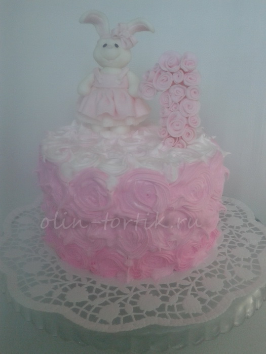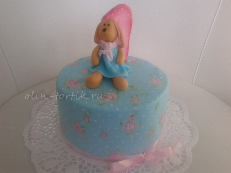 Очень милый тортик с росписью. Только единичку надо было поставить чуть в стороне, а то зайчик ее закрывает.