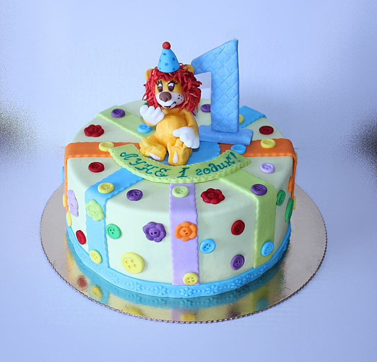 Торты детскиеЛёва с пуговичками) Начинка МД с вишней и грецким орехом. Вес 3,100
