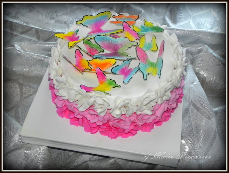 Мариночка, какой яркий девчачий тортик! А рюши- заглядение!